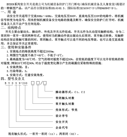 BYDX9系列安全开关